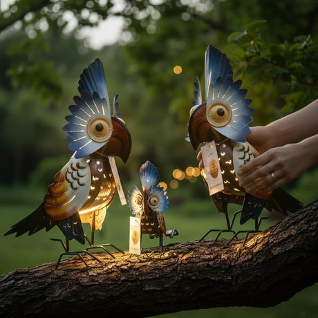Eulen. Eulenbaum mit drei Eulen aus Metall. Eyecatcher von Bali- Paradies