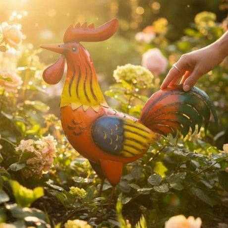 Hahn Gartenfigur bunt Metall Gartendeko wetterfest handgefertigt ca. 50cm